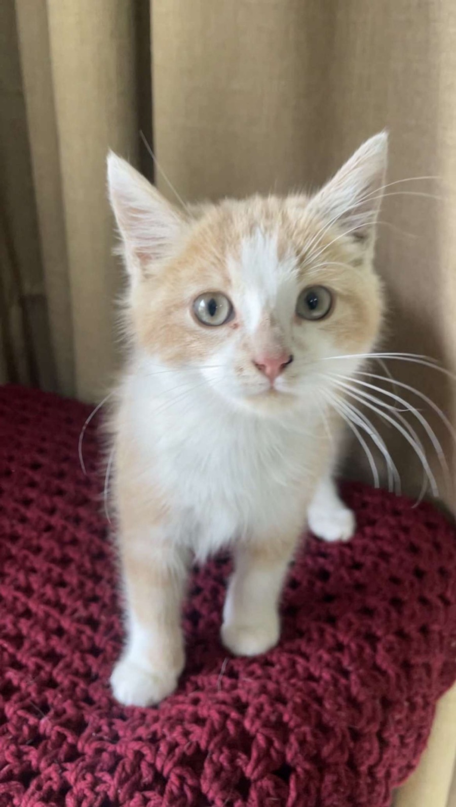 This little dude is 12 weeks old, a gorgeous dilute Champaign ginger and white and a has a whole lot of cuteness and personality to share!