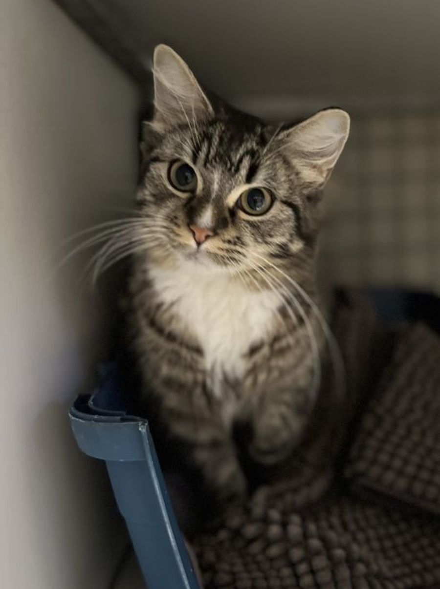 Jack came to the shelter as an un microchipped stray with his sister JILL and was never reclaimed. He is a very sweet natured boy who is shy at first but doesn't take long to warm up to you and loves cuddles. He keeps his cage clean, is litter trained and appears to be social with other cats.