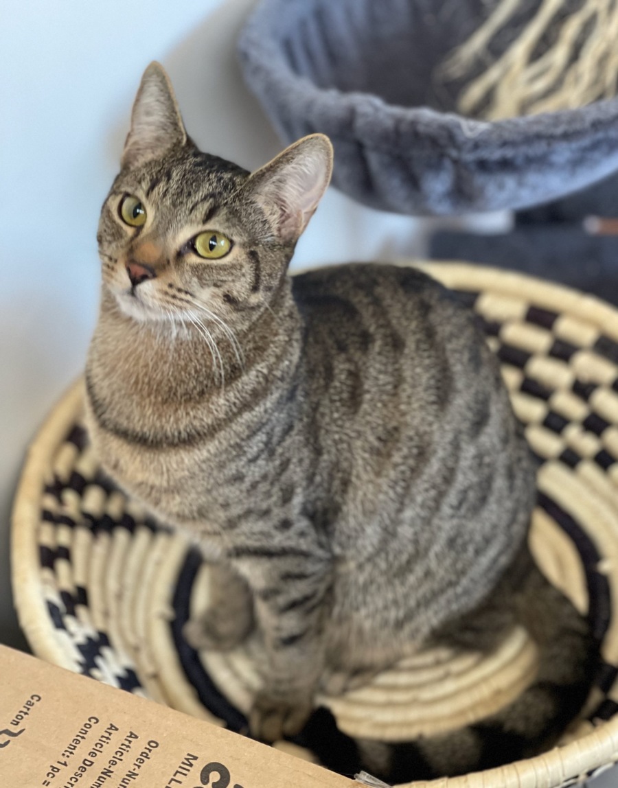 Krispy is a handsome boy who loves to play and find a lap to sleep on. He has a stunning tabby coat and beautiful features. Krispy is looking for a home where he can settle in and play and then curl up in a sunny spot and nap.