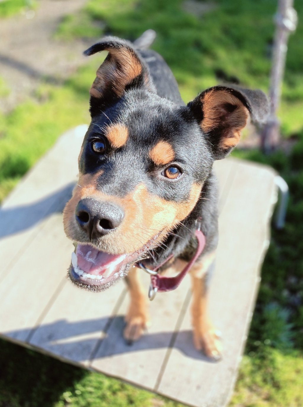 Meet Phoenix, a handsome male Kelpie x Rottweiler mix looking for his forever home! This energetic pup is under 12 months old and is bursting with intelligence and vitality. He loves to explore and play, making him the perfect companion for an active family.