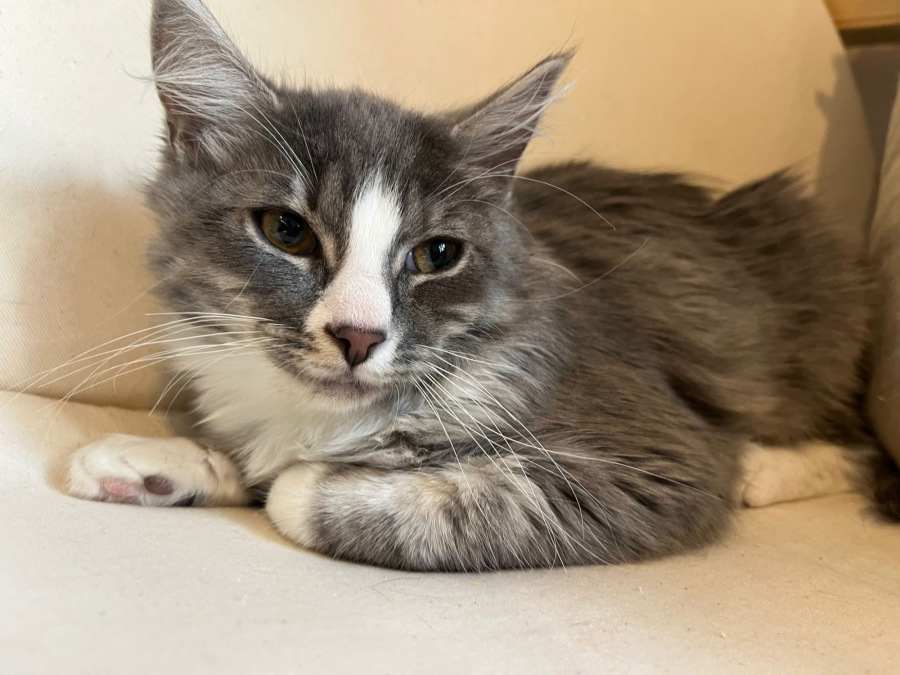 Meet Nova, a stunning kitten with beautiful long fur. Nova is very shy and timid, needing a bit of patience and understanding to help her feel safe and secure. With the right amount of love and care, Nova will blossom into a loving and devoted companion.