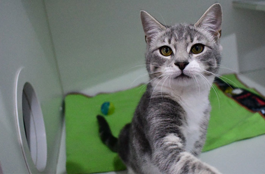Psalm is an independent girl. She knows exactly what she wants and what she doesn’t want & what she doesn’t want is to make cat friends. Although Psalm came in with her brother (Lawson) and they got along fine, she has changed her cattitude towards all other cats. Psalm is happy being single & is not in the mood to mingle – unless with her human friends, of course!