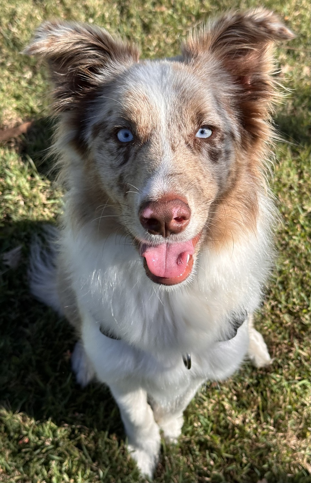 Meet this stunning female Border Collie mix with a beautiful chocolate merle coat and gorgeous blue eyes. Her striking markings make her a truly unique and captivating companion. This young lady is not just a beauty; she's also full of energy and intelligence, characteristic of the Border Collie breed. She loves to play and learn, making her an ideal match for an active and engaged owner. With her sharp mind and eager-to-please nature, she's perfect for training and mental stimulation. This pretty pup is looking for a loving home where she can share her playful spirit and affectionate nature with her favourite humans.