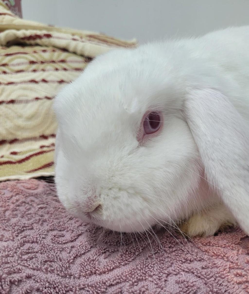 These snow white, pink eyed rabbits love attention. They require a well varied diet with lots of roughage and good quality treat to keep him in pristine condition. He would love a new home environment in which to play and have access to an indoor outdoor hutch. Kids in the home would be welcomed as long as they were kind gentle and calm.