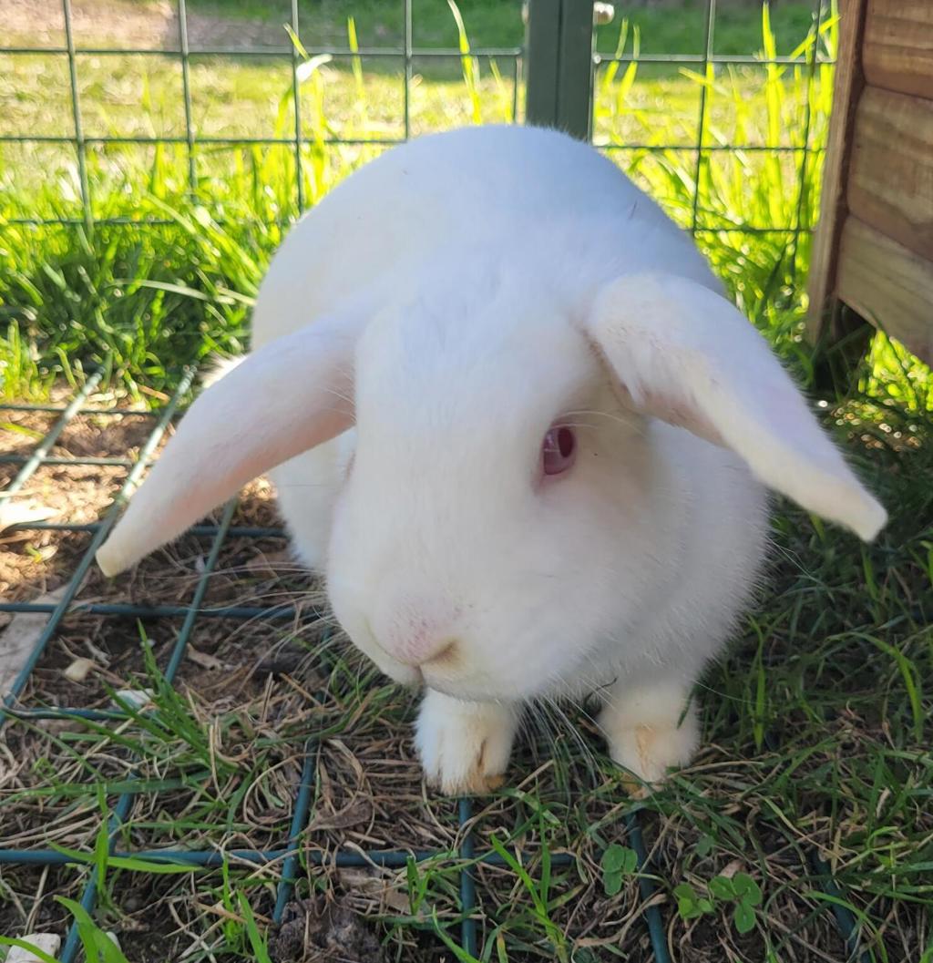 These snow white, pink eyed rabbits love attention. They require a well varied diet with lots of roughage and good quality treat to keep him in pristine condition. He would love a new home environment in which to play and have access to an indoor as well as an outdoor hutch. Kids in the home would be welcomed as long as they were kind gentle and calm, just like little Juliet herself.