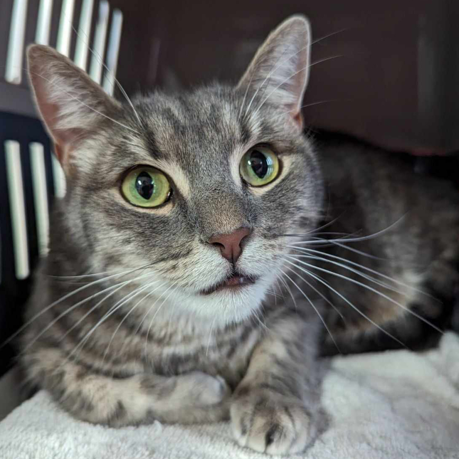 Meet Peeps, she's as adorable as her name suggests! Peeps is an independent lady cat who loves cuddles and attention, although she won't always come to you for them. She's the perfect companion for those who understand the unique desires of our feline friends; she won't constantly stick around for pats or cuddle sessions, but when approached, this affectionate feline will give you all the love you seek.