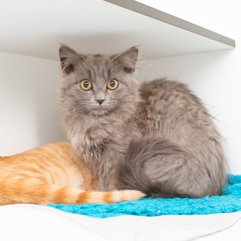 Say hello to Gravy, the fluffiest and most adorable grey kitten you'll ever meet! This little guy is as cute as a button, with his soft, fluffy coat and sparkling eyes. Gravy is a cuddle enthusiast who loves nothing more than snuggling up with his favorite humans.