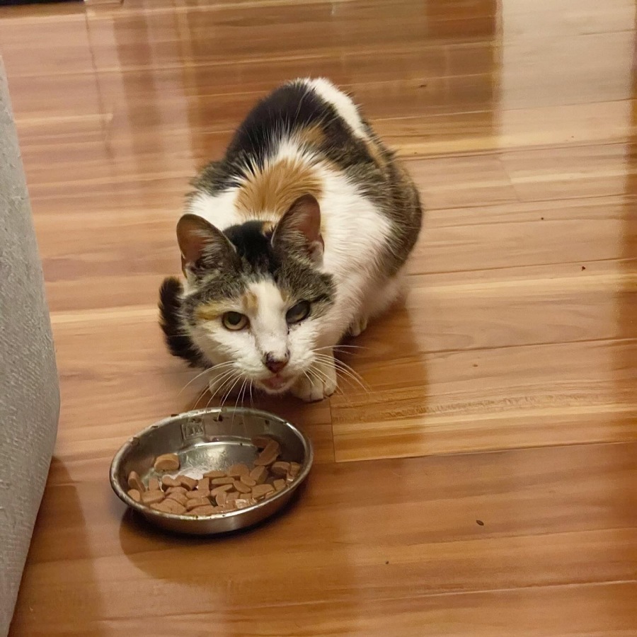Bertie is currently thriving in her foster home, where she resides among eight other cats. She graciously coexists, paying little to no attention to her feline housemates. Having been through such a substantial change, Bertie is eager for a loving home where she can bask in the attention and care that she truly deserves. Although she is FIV positive and requires a diet of soft food due to a few teeth extractions, she is in high spirits and enjoys her meals without fuss.