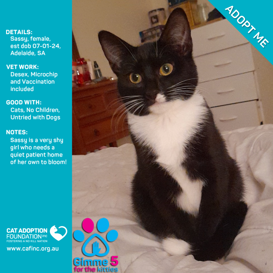 Donate to Sassy Just $50 Limited Time! at Cat Adoption Foundation Incorporated via Shout