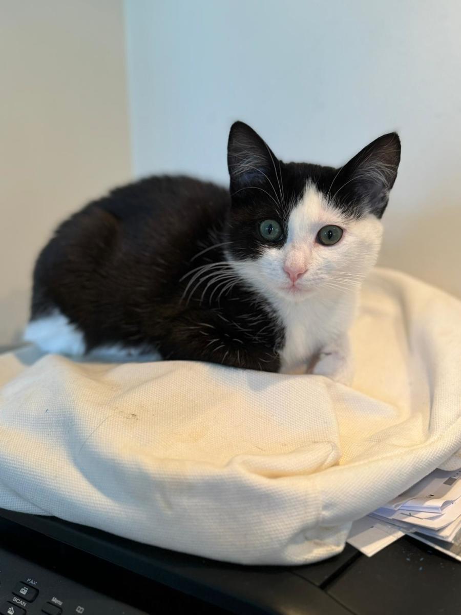 This adorable kitten loves to explore, play, and cuddle up in sunny spots.