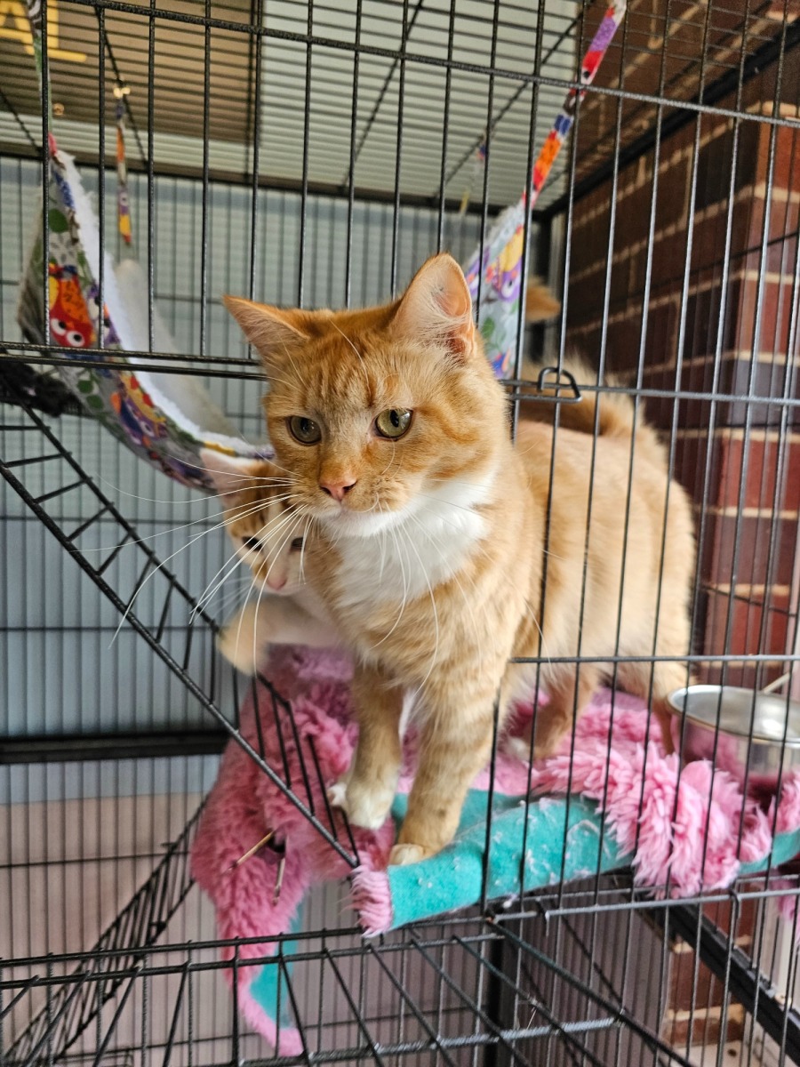 Introducing the dazzling Starfish, a feline beauty with a ginger coat so bright it matches her sparkling personality. Starfish found herself homeless when her owner suddenly passed away but has adapted and blossomed beautifully into the sassy and attention-demanding companion she is today.