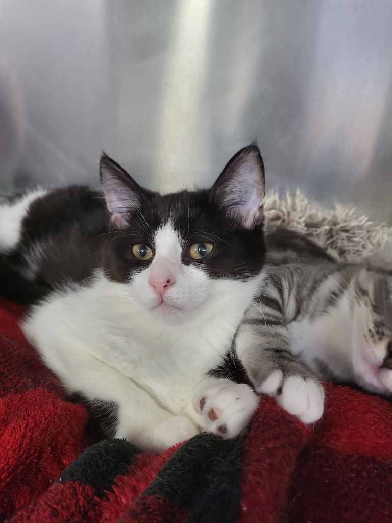 Moon still is a bit shy around new people, and it will take him a little while to trust. Once he has settled in to his new home and gets to know you he will open up and show you so much love and affection. Food is a very good way to connect with Moon. Moon loves his siblings and got along really well with 2 adult cats while in foster.