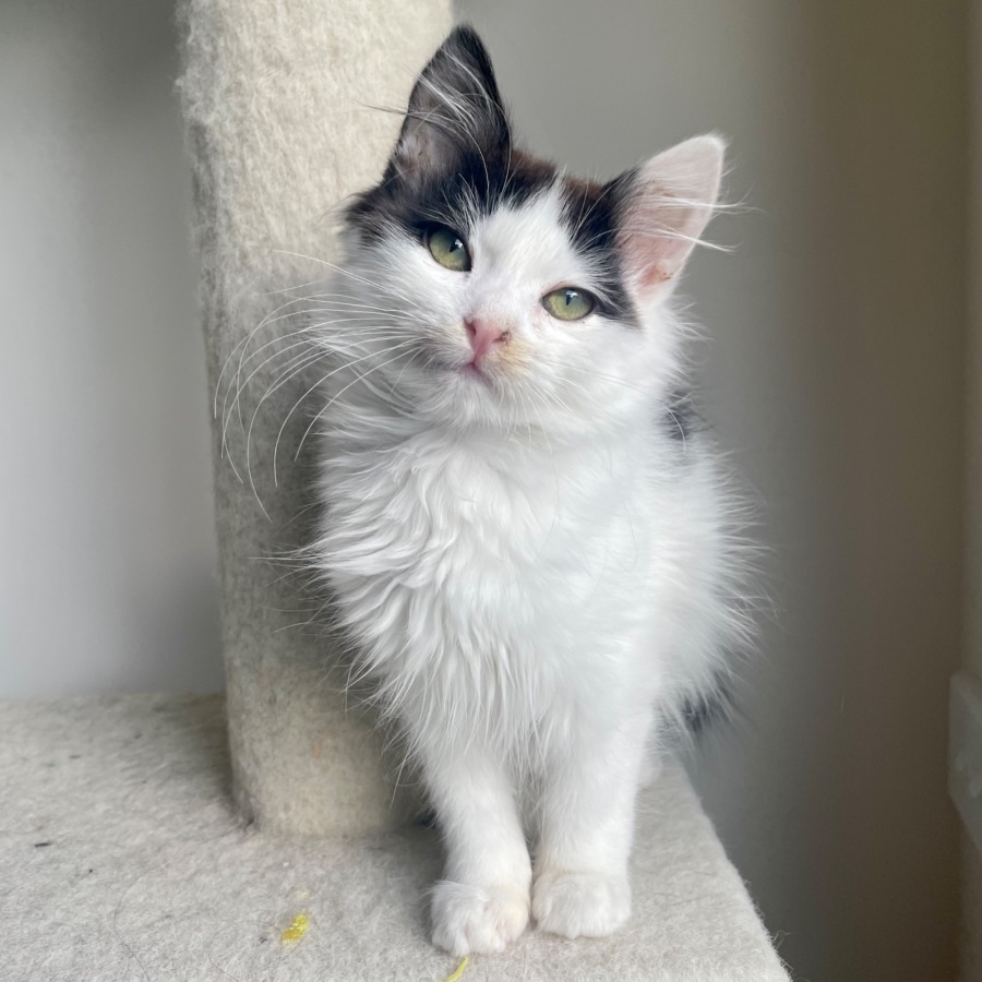 This playful, curious, and affectionate young male kitten impresses everyone he meets. No laundry basket, palace (cat tree), or box is safe from his desire to investigate, so you can look forward to a home filled with his cheerful curiosity. His soft purring assures everyone he meets that their company is appreciated.