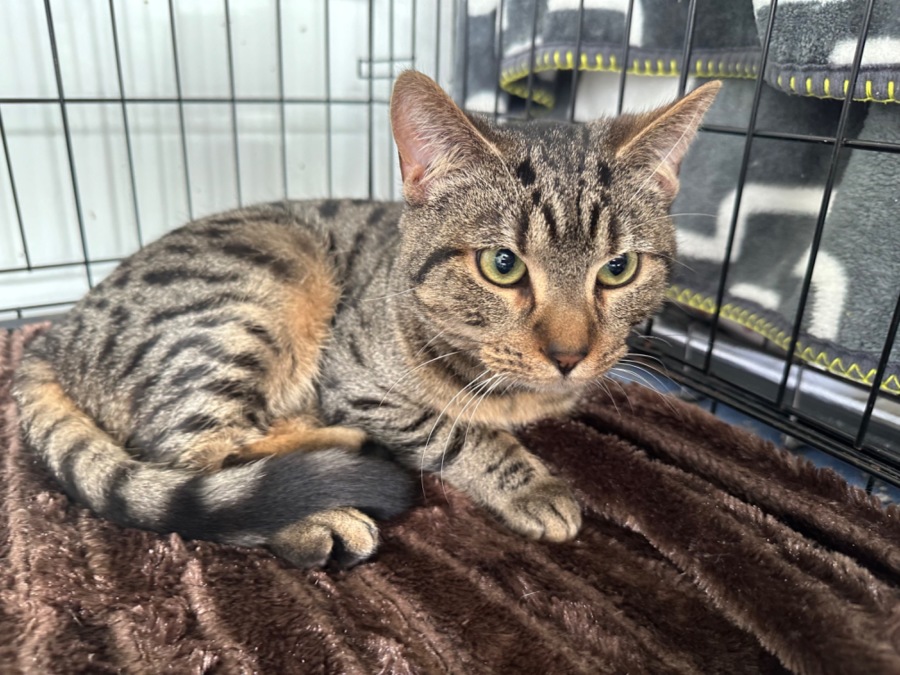 Georgie is a loving 7 mth old kitten bengal mix, he has been in a foster home so used to being in a loving home. He likes other cats as well as being comfortable alone too.