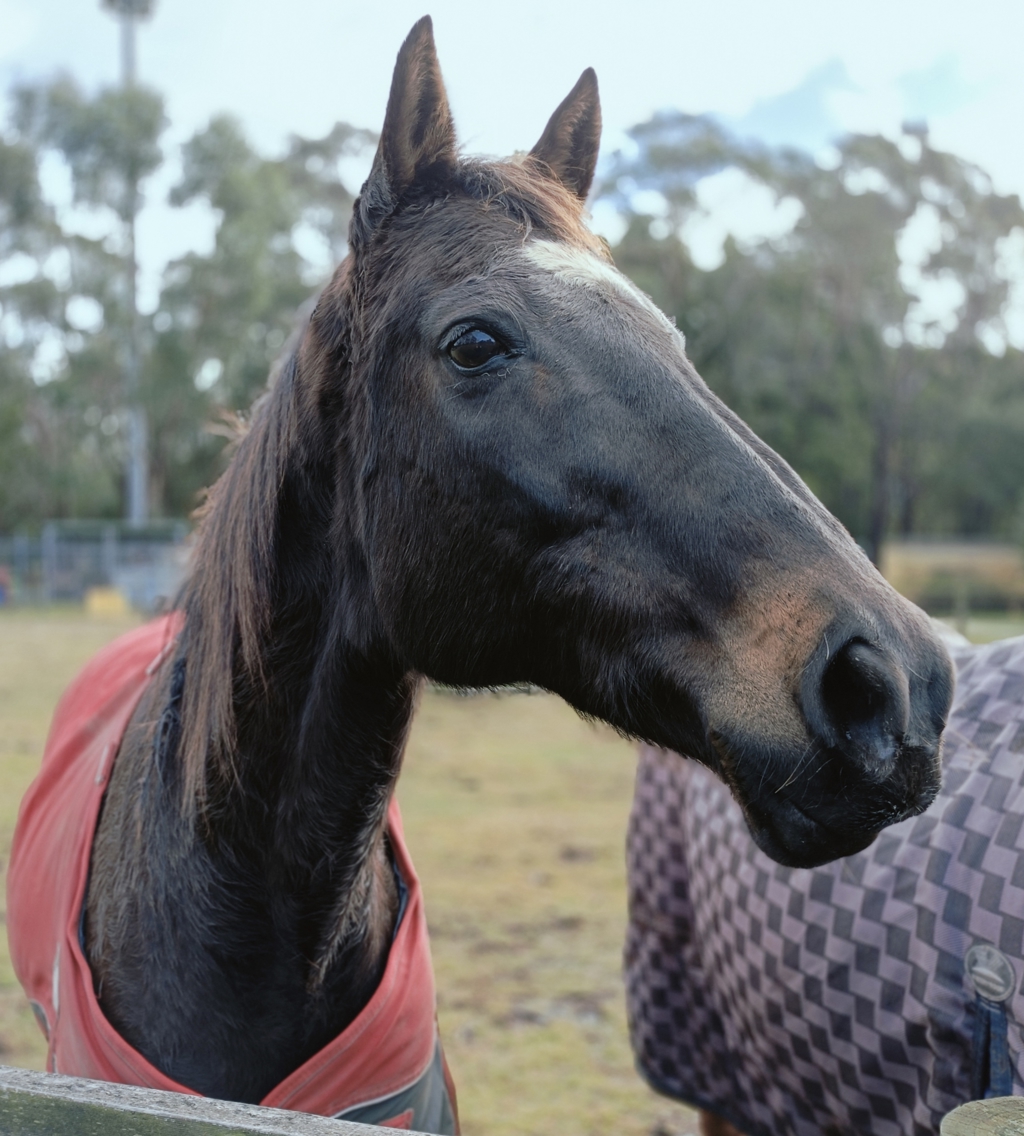 Brownie is a 20-year-old Brown Thoroughbred mare who is as sweet as can be. She loves attention from her humans and thrives on having a companion by her side. She is a sensitive soul who gains confidence from the love and care of her handler.