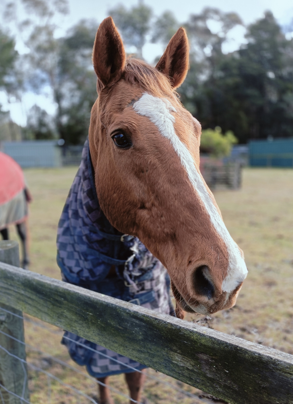 Hello, my name is Ginger and I am a 19-year-old Chestnut Thoroughbred mare. I am a retired racehorse looking for a loving retirement home where I can spend my days enjoying the company of my human companions. I am easy to handle and have a beautiful nature that will make me a wonderful addition to your family.