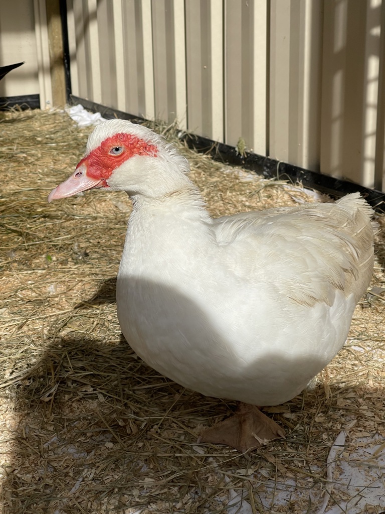 Overall, Siri is a gentle, tolerant, laid-back, and happy Muscovy duck who is ready to find her new loving home. Her calm demeanour, love for the water, and easygoing personality make her a standout companion. If you're looking for a peaceful and joyful duck to join your family, Siri would be a perfect choice. Come meet Siri and let her gentle spirit bring a touch of tranquility and happiness to your home.