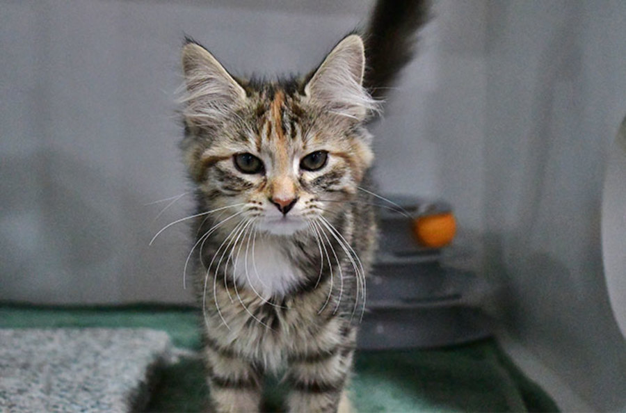 Just like all kittens, Emori would love a cat tree to climb on and scratch, and an assortment of toys to play with. She should be fed kitten food multiple times a day to ensure that she grow up big and strong.