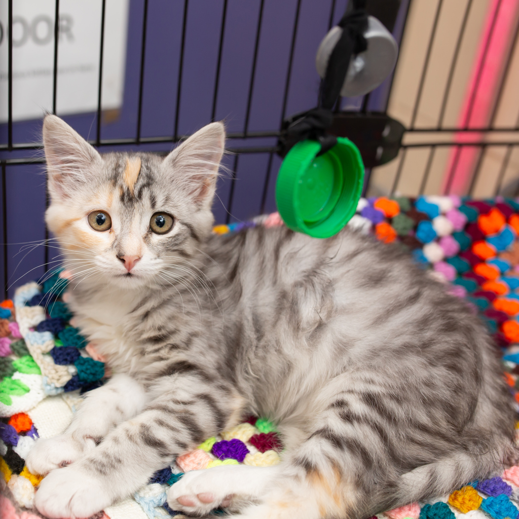 Meet Shrimp, the sweetest little kitten with a heart full of love and a playful spirit! Despite her small size, Shrimp has a big personality and is always ready for an adventure. She loves chasing after toys and exploring every nook and cranny, but she's also a cuddle bug who enjoys curling up in your lap for a cozy nap. With her soft fur and curious eyes, Shrimp is sure to bring joy and laughter to your home. If you're looking for a loving companion with a dash of mischief, Shrimp is the perfect match for you!