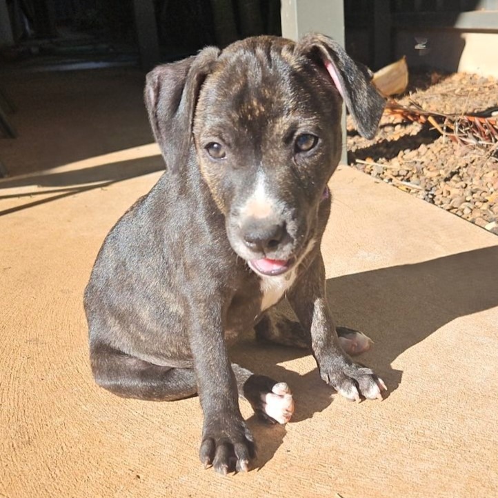 Zenith means the highest point but I have not reached that yet as I am still a pup. I heard my foster carer describe me as ‘a beautiful boy’ so there. I am the biggest of the litter and I just love dinnertime! And I love kids and am very good with them. I am a Pilbara special by breeding and am still just a pup, a blank slate. I get on with other dogs as well, and am always up for a cuddle. When asked to describe me in one word, my foster carer said ‘fun’. That’s me all right! I am a good eater with no food aggression (party trick?) though not greedy and savour my food like a connoisseur. I am learning about toileting and other things, such as how to handle a pesky tennis ball. I travel in the car without complaint and I am not into digging or barking. If someone would take the time to train me, I could be the dog that you have always wanted. I would be a great addition to a family with children. If you would like me in your life and are patient whilst I learn, Apply to adopt today and ask for Zenith.