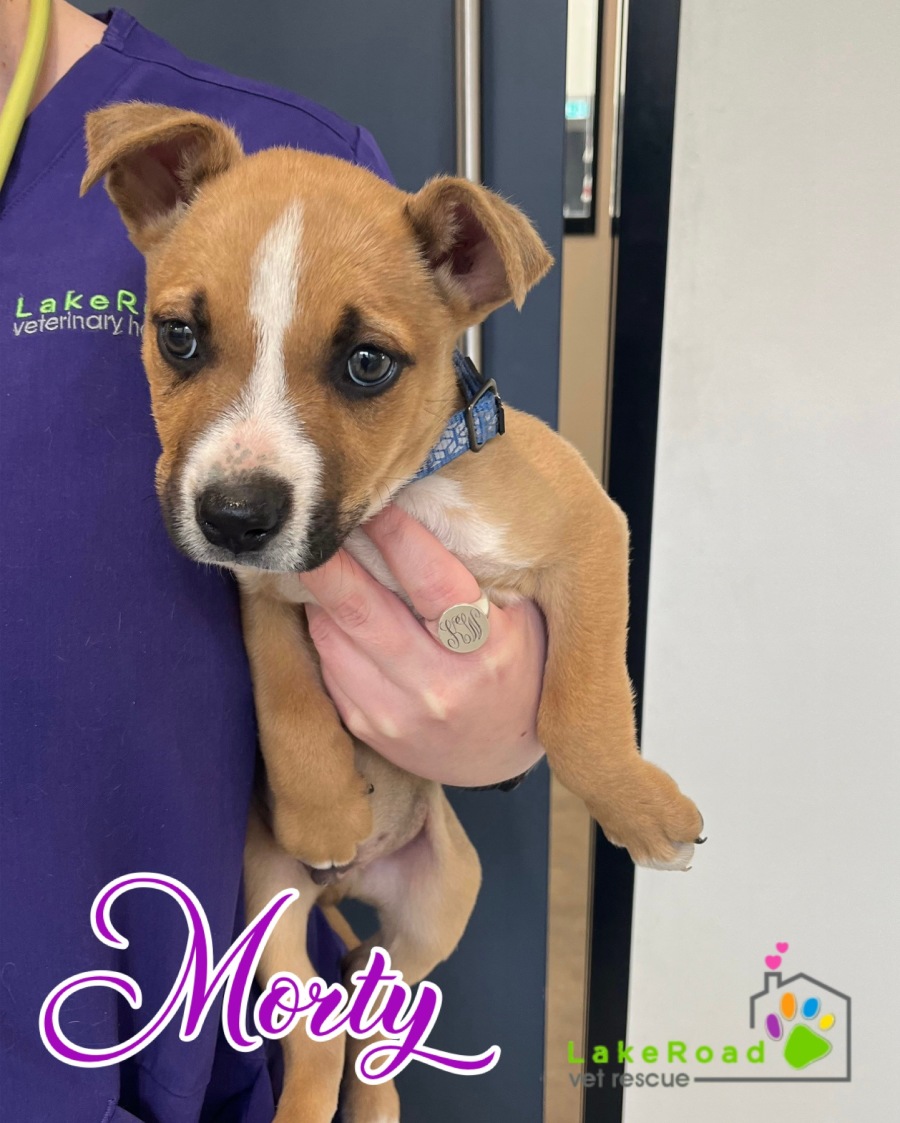 Mortys' mysterious blend of breeds only adds to his charm. He came to us alongside his 11 littermates, and while we can't pin his breeds down, we can affirm that his quirky characteristics and loving nature are irresistible.