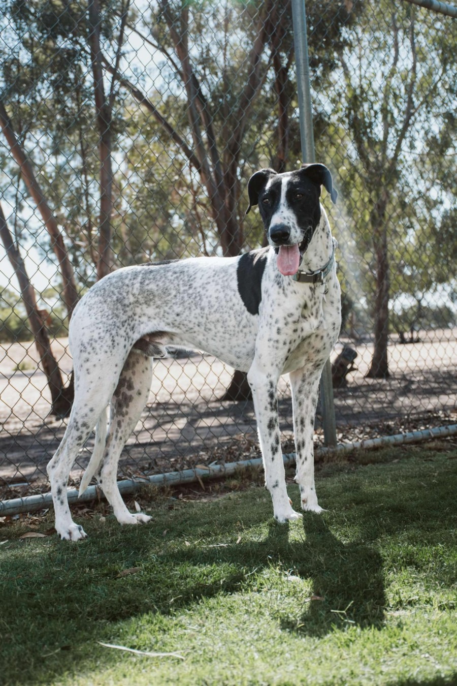 We think Murphy is a Pointer x Greyhound or Staghound. He is estimated to be around 2 years 5 month old.