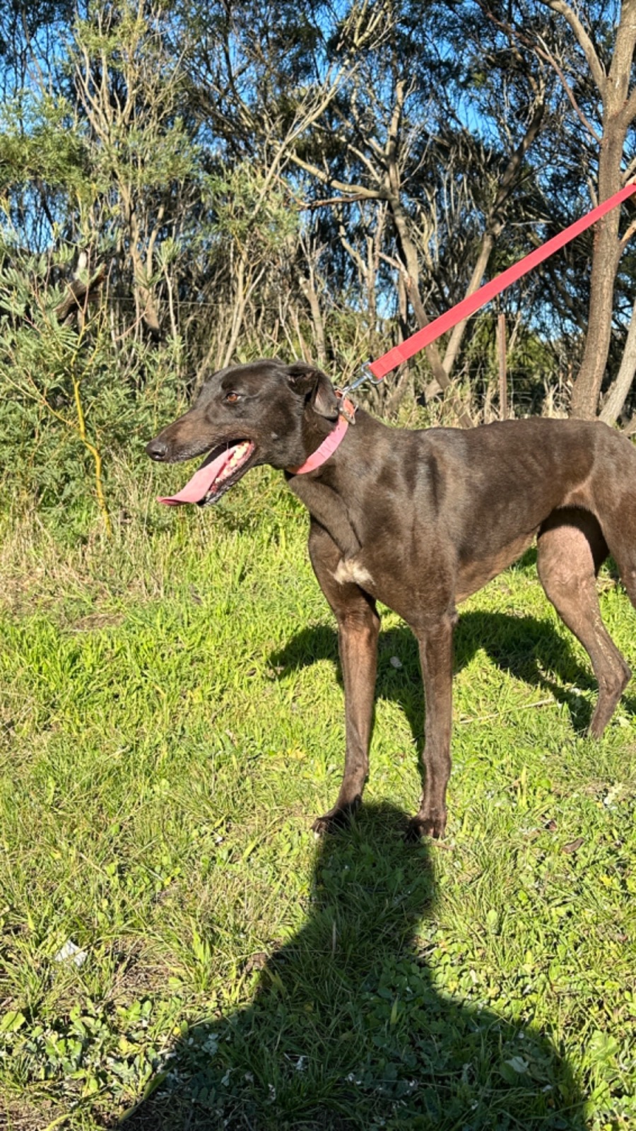 a stunning black greyhound with a heart full of love. This sweet girl has a caring nature that will melt your heart from the moment you meet her. Hazel is the perfect companion for someone who’s looking for a loyal and affectionate friend. She loves to be around her humans, offering gentle companionship and endless love. Whether it’s lounging by your side or enjoying a peaceful walk together, Hazel is always ready to share her warmth. She’s searching for a forever home where she can give and receive the love she truly deserves. Could Hazel be the perfect addition to your family?