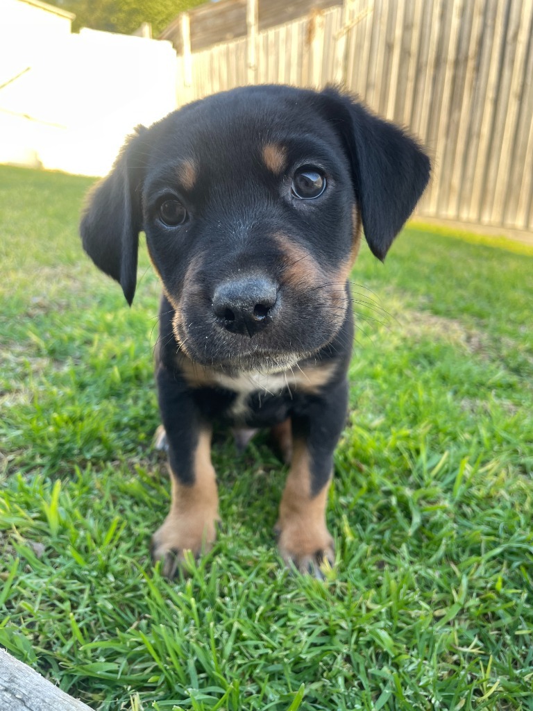 Introducing Didge! This eight-week-old pup is eager to join your family. He's one of seven siblings, currently enjoying life with his mum and four other dogs, which has given him excellent early socialisation skills. Didge's mum is a mix of beagle and kelpie, and while his dad is suspected to be a bullmastiff, his ultimate size remains a bit of a mystery—likely large!