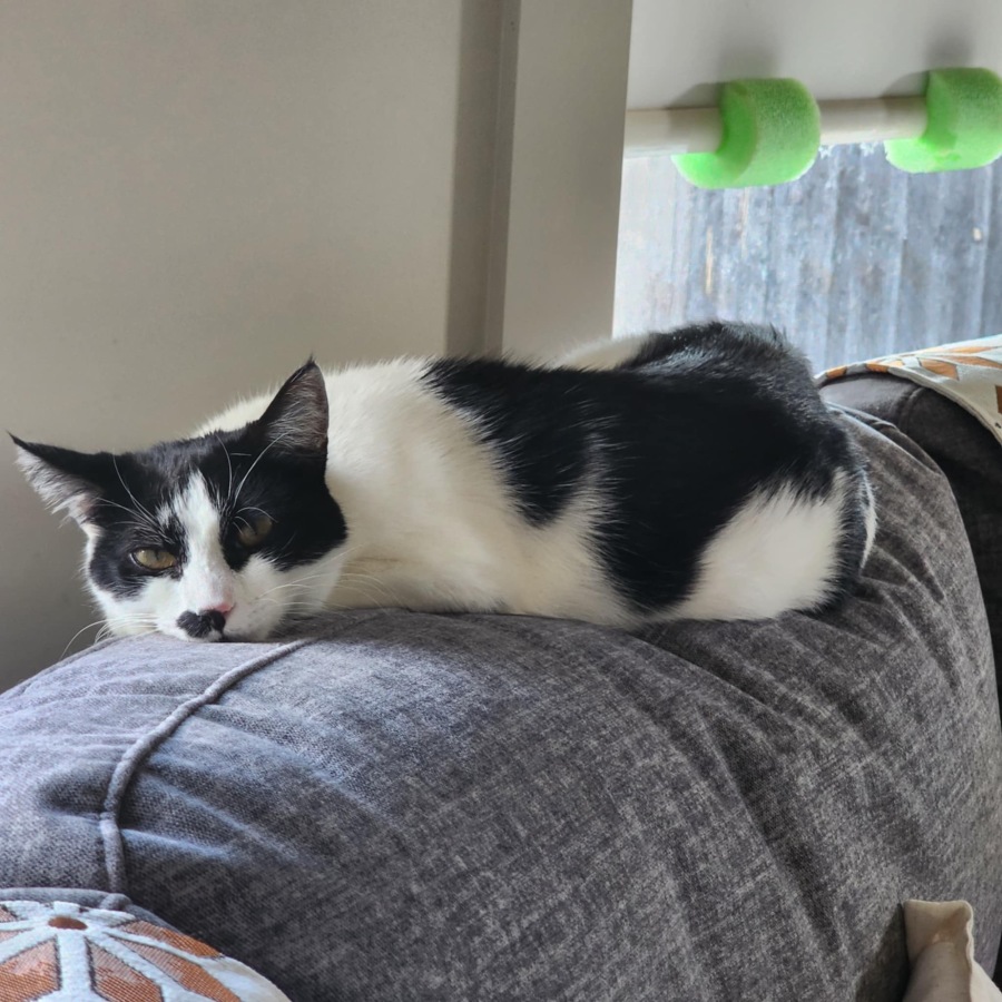 This big smoochy boy shows off his gorgeous coat while he struts his way down any catwalk. The unique 'moustace' design on his face is a starter for any convo or cat pics. He contains a calm, but sometimes, crazy energy that makes you laugh.