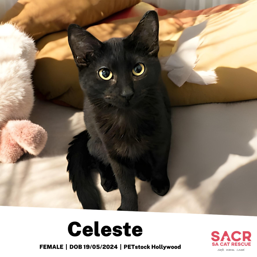 Meet Celeste, an adventurous and stunning female kitty ready to join your family! With piercing eyes and a sleek coat, Celeste is as charming as she is curious. Her journey at her foster home began with a bit of apprehension, but she has gradually come out of her shell, showcasing her inquisitive nature every step of the way.