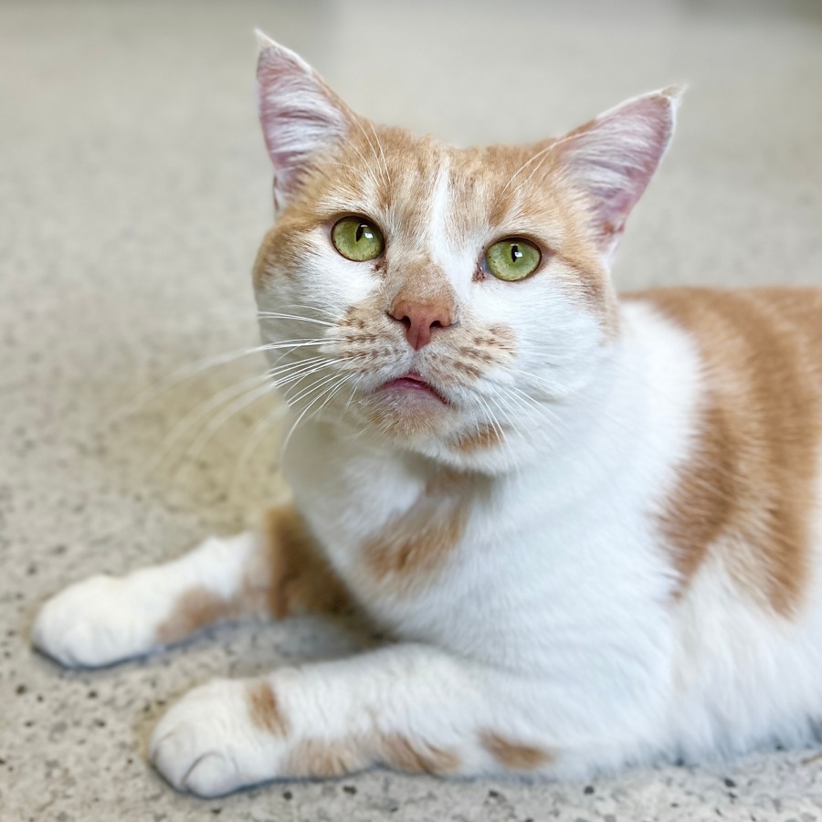Morty is a big funny dude keeps the staff amused by head butting our legs to let us know he demands attention and will flop in-front of your feet so that you MUST pat him.