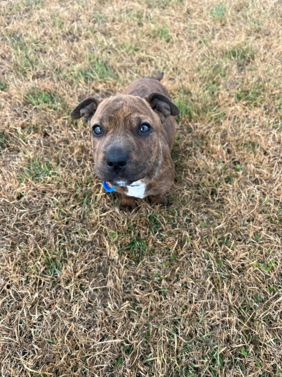 He has grown up around 2 of his siblings as well as 2 large dogs, and he adores everyone. Definitely at the bottom of the pecking order, but he is happy with that arrangement and will sit and wait his turn with no questions asked.