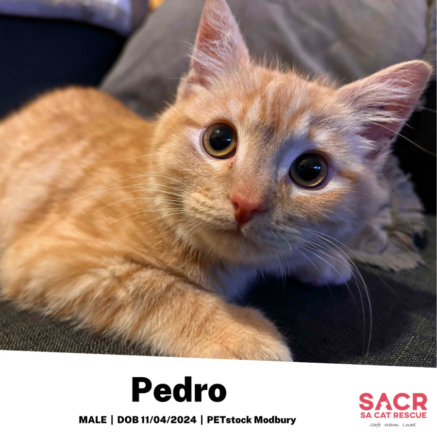 Pedro’s adoption fee is $195 which includes desexing, microchipping, parasite prevention, and initial F3 vaccination.