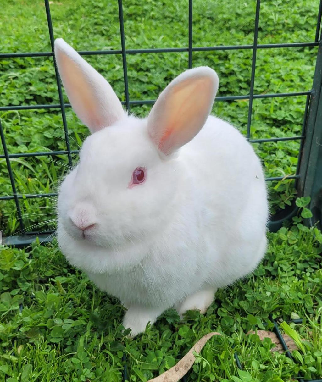 Eggsercise is currently looking for her new home. She is a lively and loving companion. A stunning pure white rabbit with a passion for exercise and playing!
