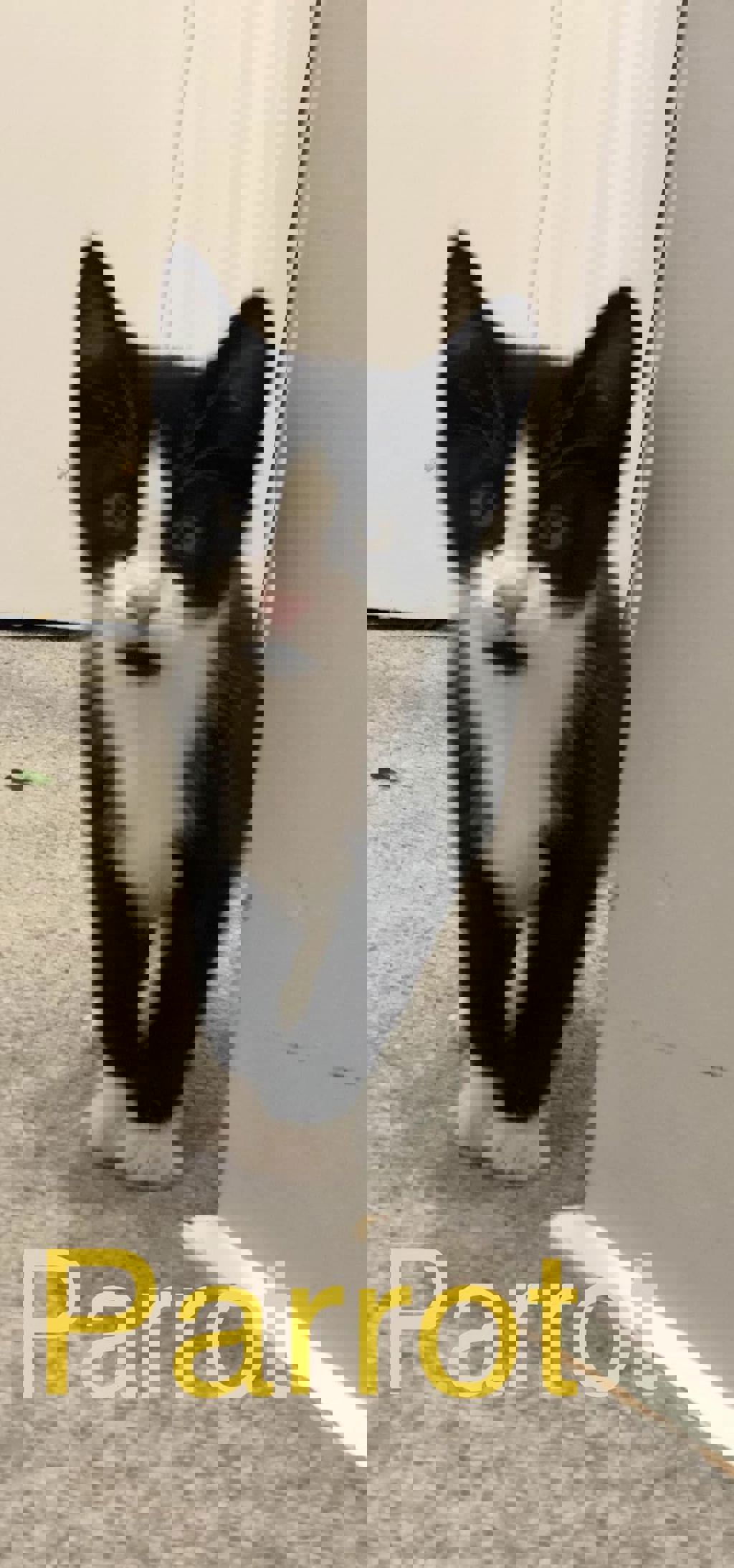 Parrot is a chatter box who loves to let you know what he is thinking about. He loves company (fur or human) & chasing a toy mouse - chasing things is his favourite thing to do. He is a quirky boy who loves to be part of the action but isn't needy. He loves other cats! Curious & a bit wild! Note: he can get very excited with young children and get a bit scratchy.
