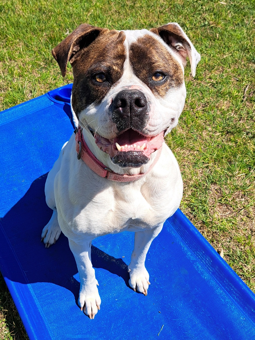 Meet Mini, a spirited 3-year-old female American Bulldog who's ready to bring joy and companionship into your life! Mini is a lovable and friendly girl who adores spending time with people. Her warm personality and affectionate nature make her a perfect addition to a loving home.