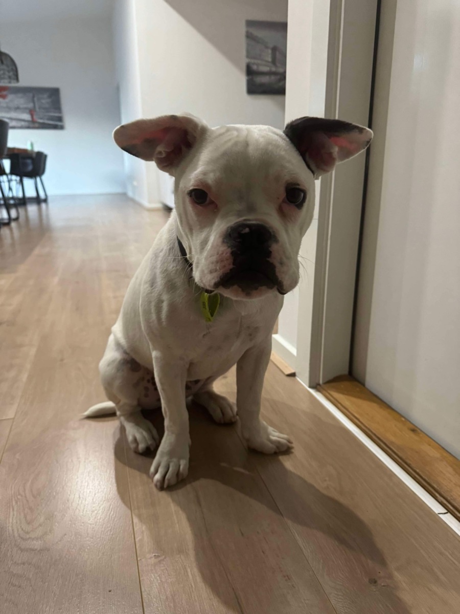 This little man is the sweetest, fun pup. He is a Bull Arab mixed possibly with a bulldog and stands out from his litter for his cute looks and different colourings than the rest!