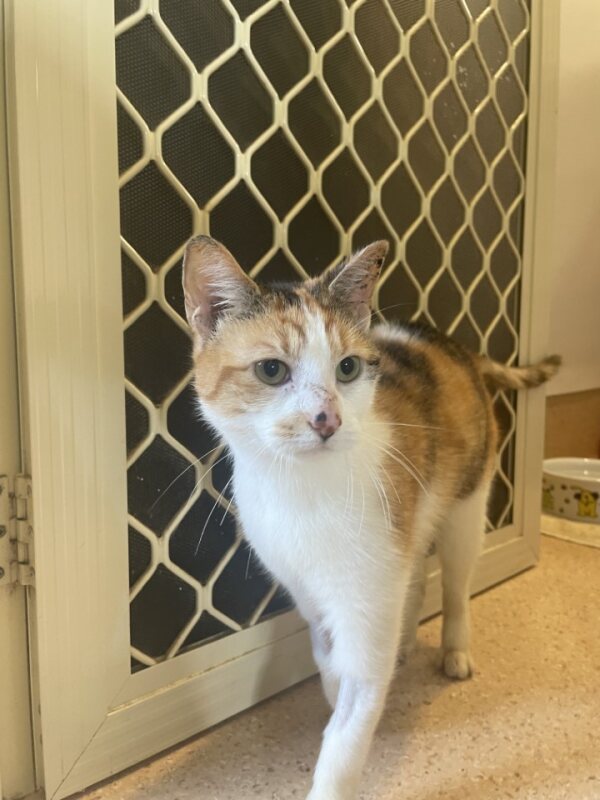 I am a sweet and gentle lady who has had a tough start to life, despite this - I trust people quite quickly if they approach me the right way! Id best suit someone who is familiar with cat behaviours and needs so that i have the best chance to settle into my furever home, a launch room would be best - I can be quite fearful of loud noises so older children and a quiet home would be best for me. I prefer not to be picked up and carried around the place, instead i will follow you around with my happy feet that knead as i walk, then curl up next to you or on your lap. I wouldnt mind having another fur baby at home as long as they are a cat like me, sweet and gentle! We will need to be introduced slowly - please ask the staff if you have any questions!