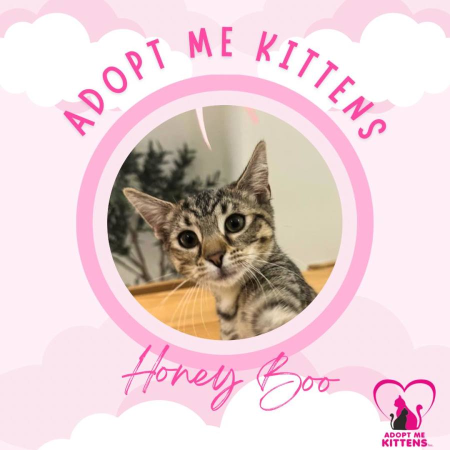 Honey Boo is the complete package. A sweet, snuggly, friendly, little girl. She gets on well with other kittens and loves human company. She would love to be someone's little treasure.