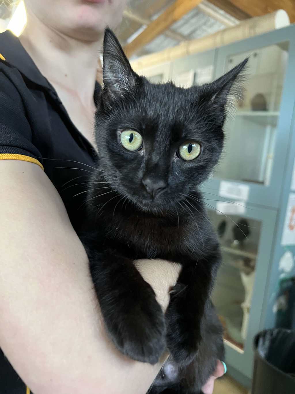 Hey there, I'm Wednesday. I'm a friendly and affectionate kitten who would suit most homes! My playful paws are always ready to pounce on anything that moves. I love playing with wand toys and mysterious shadows on the wall! When I'm finished playing, I love nothing more than finding a warm lap to curl up in.
