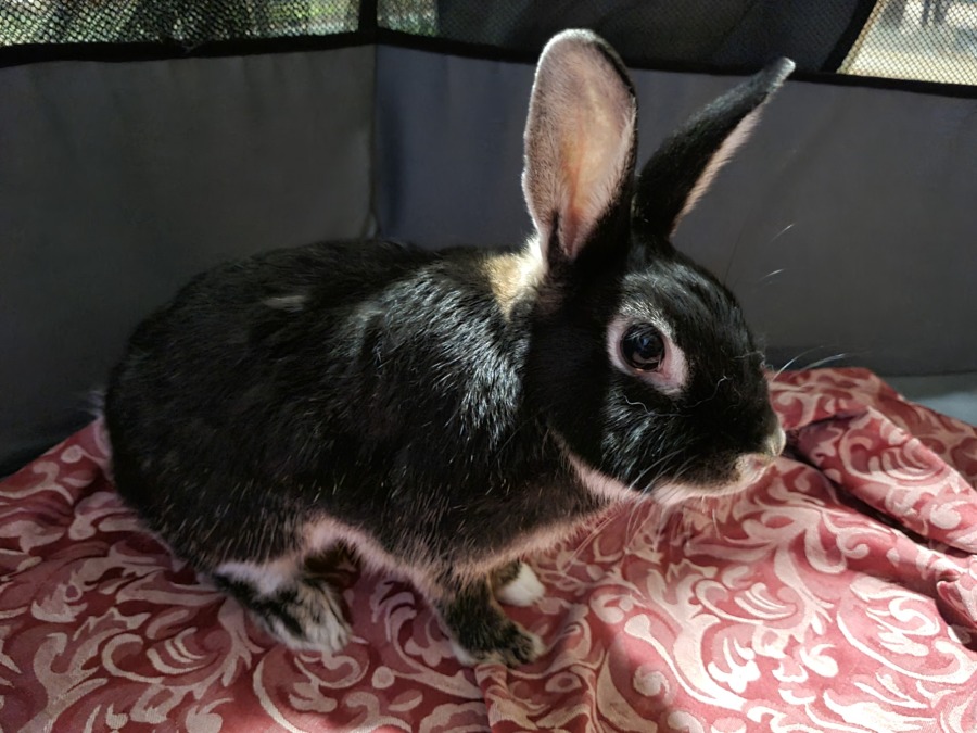 This little rabbit thrives on companionship, desiring either a bunny friend or a loving human around to keep her company. Venus loves to groom her teddies and occasionally extends her grooming talents to her favorite human. And if you're ever distracted with something else, be prepared for a gentle paw on your back or a nuzzle against your arm or phone to remind you that she needs some attention! Although Venus isn't fond of being lifted, she'll happily snuggle and nestle into your jacket once she's in your arms.