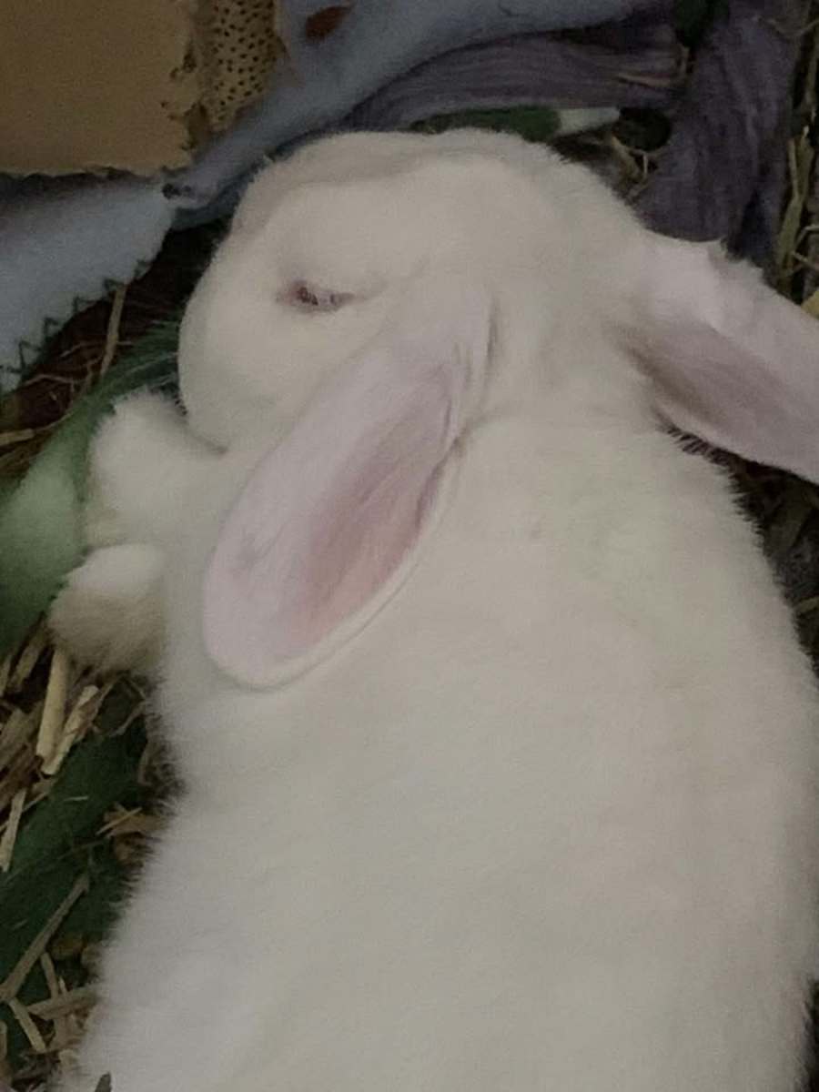 Vivi, on the other hand, offers a gentle and tranquil presence with a striking white coat and mesmerizing ruby eyes. Vivi enjoys the occasional adventure, hopping onto the same couches and shelves as her sister, but also knows how to enjoy the simple pleasures of life, like nestling into a pile of cozy hay or receiving loving cuddles and pats. She balances her quiet side with bursts of affectionate energy, exploring all heights and crannies. Vivi's perfect day includes enjoying her favorite snacks and snuggling up for some affectionate petting time.