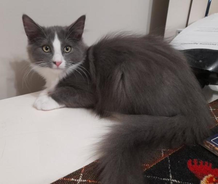 Muffin has been diagnosed with a heart murmur which means he will require quarterly check ups at the vet and may have to be on regular medication when he is older. He is a sweet, beautuful boy who is deserving of his own special family. Muffin plays and runs just like any other kitten. He loves to be cuddled and kissed and has the most gorgeous long blue/grey coat. He would really thrive in a family of his own.
