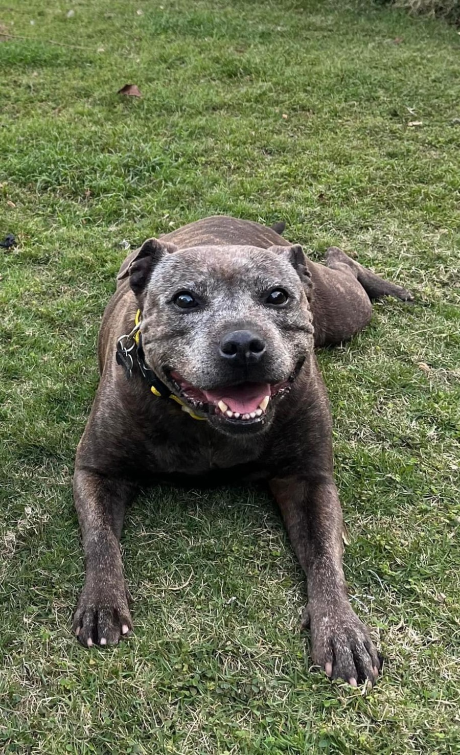Kye still loves going for walks. The second she sees her lead out she is at the door wagging her tail. Kye is a little chunky and could stand to lose a bit of weight.