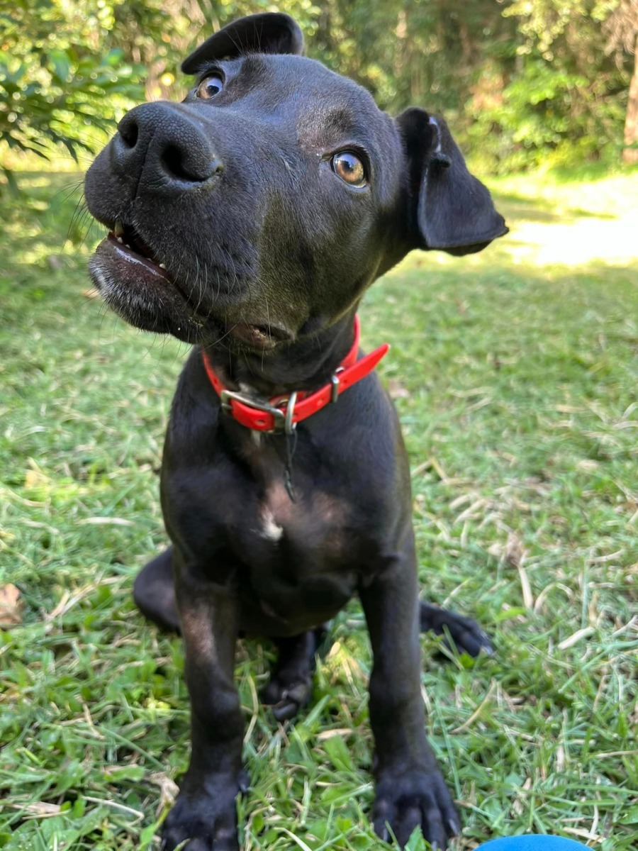 Our Big Red is the heavier pup in his litter, and he wears red collar that gives him his name. He’s an independent young fella that can be shy to lots of attention although comes out of his shell more and more each week, enjoying the reassurance he’s a good boy.