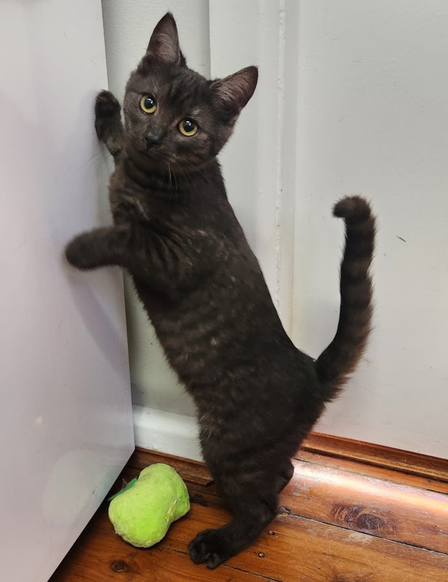 She's a fabulous baby girly - very funny, playful, loving, and a gorgeous charcoal tabby to boot. She's going to grow into the most loyal and loving family member and we wish her every success as the challenge of picking a furrever family begins.