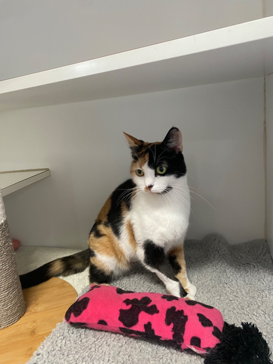 Lillian is very sweet and friendly, she’s quiet and quite laid back in hospital. She’s been a favourite among staff, for her pretty calico coat, her beautiful eyes and calm demeanour.