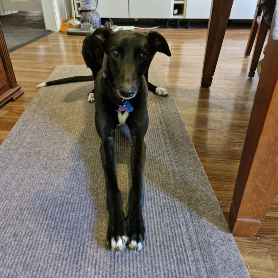 Meet Katie, the happiest little greyhound. She's a compact 25kg!
