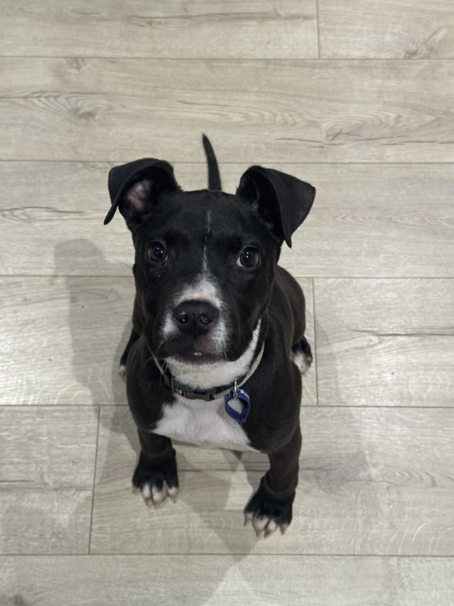 Hi, my name is Pablo & I am a 4 month old Staffy x.