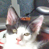 Rascal is a 6 month old black & white long haired male who was abandoned with his mother and her other kittens. Rascal is very outgoing, has a great nature, loves to play, is affectionate and gets on well with other cats and dogs. He's house-trained and can use a cat door